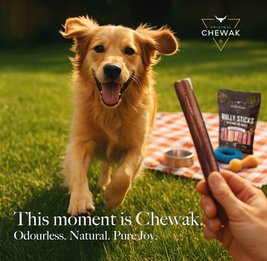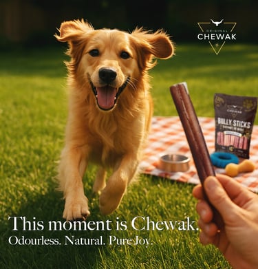We started Chewak because we wanted better: better quality, better transparency, and better choices for the pets we consider family. Too often, we saw dog chews that were full of mystery ingredients, strong odors, or poor quality — and we knew we could do more.